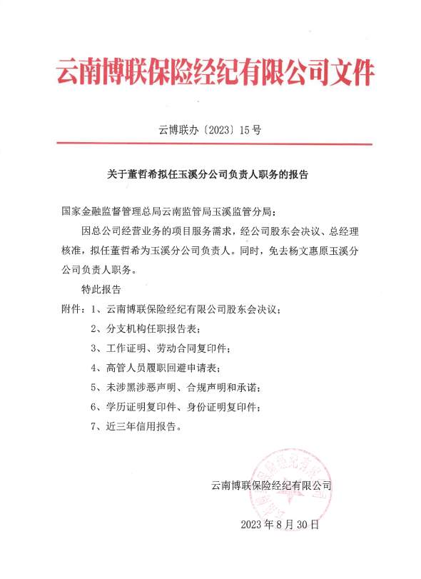 云南博聯(lián)保險經(jīng)紀(jì)有限公司關(guān)于保
