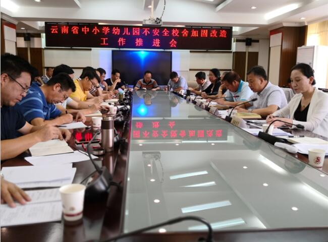 為貫徹落實中央和云南省委、省政府主要領(lǐng)導對中小學危房改造的指示精神,加快推進中小學幼兒園不安全校舍加固改造工作,2018年7月28日上午,云南省中小學幼兒園不安全校舍加固改造工作推進會議在省教育廳召開。省教育廳、省住房和城鄉(xiāng)建設(shè)廳以及16個州(市)教育局、住建局分管領(lǐng)導,兩廳相關(guān)處室負責人共計40余人參加會議。